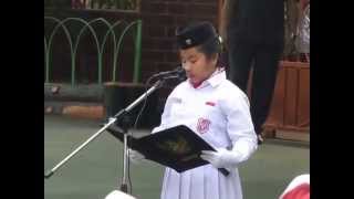 kelas 5b berkesempatan menjadi petugas upacara pengibaran bendera merah putih di SDN Pondok Labu 11.