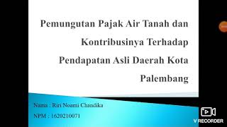 Membahas tentang Pemungutan Pajak Air Tanah dan Kontribusinya Terhadap Pendapatan Asli Daerah Kota Palembang Riri Noami Chandika - 1620210071.